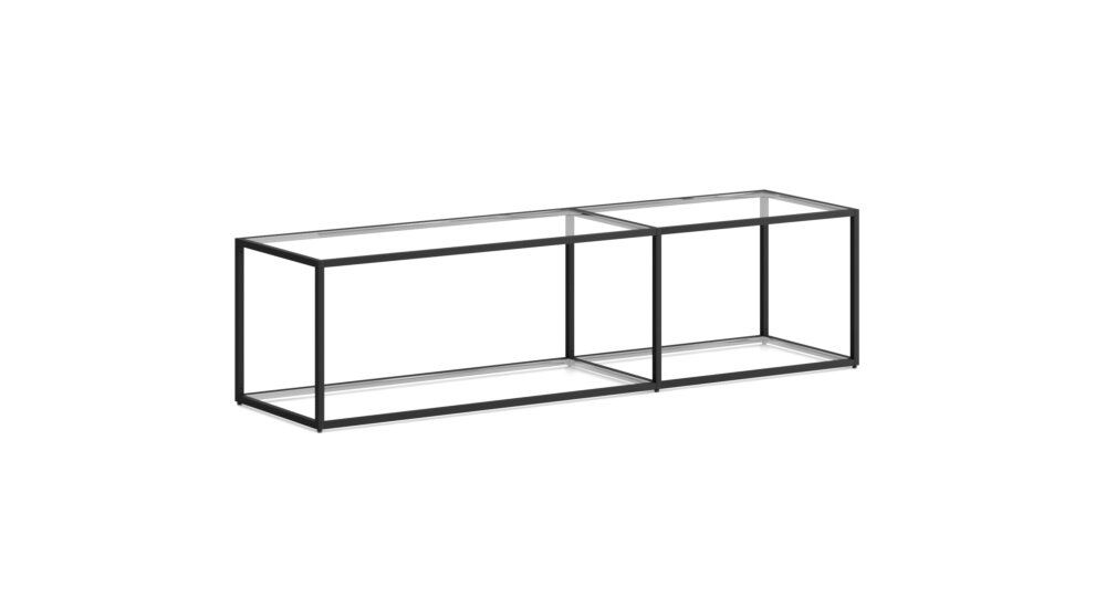 Im Blickpunkt des Regals steht der filigrane Rahmen aus schwarz-mattem Aluminium. Bei den Fachböden haben Sie die Wahl zwischen wunderschöner Naturholzoptik, die man fühlt - sowie modernen Glasböden. Das Regalsystem lässt sich ganz nach Ihren Wünschen modular in die Höhe und Breite bauen. Als besonderer Clou können die Regalböden auch weggelassen werden, um zwei Fächer in der Höhe zu verbinden: Pflanzen und höhere Gegenstände verleihen dem Regal so einen unvergesslichen Auftritt.