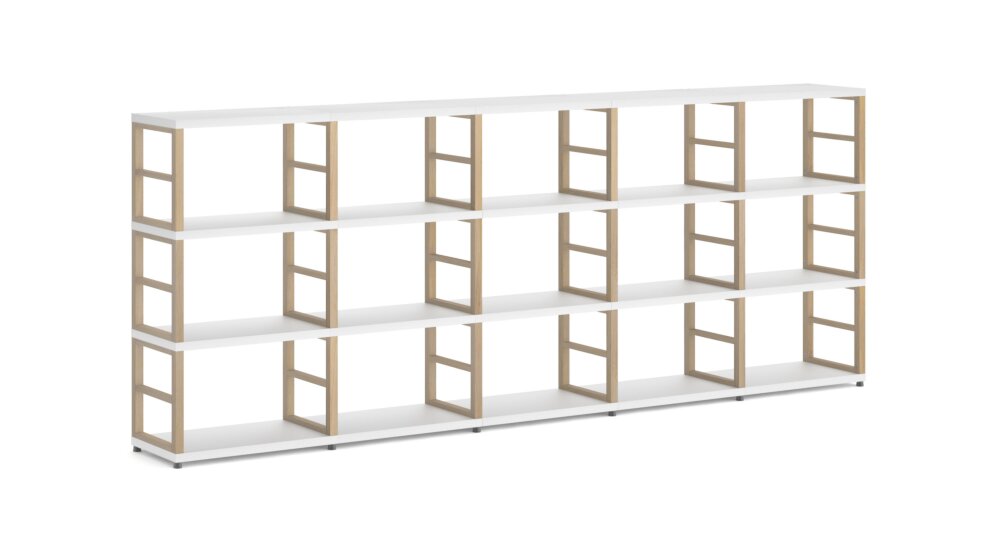 Modulares und belastbares Regalsystem mit rechteckigen Fächern und offenen Seitenrahmen. Schwere Bücher, gewichtige Ordner und schöne Deko finden hier das perfekte Zuhause.
