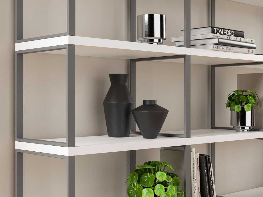 Der offene MAXX M-Seitenrahmen wird aus Stahlprofil präzise verarbeitet und mit einer robusten Pulverbeschichtung versehen. Er wird in einer kleinen Partner-Manufaktur produziert. Die MAXX Regalböden sind 2,8 cm stark und mit einer robusten Melaminbeschichtung versehen. Die Innenabmessung eines Regalfaches beträgt (BxHxT) 54,2x32,8x32,8 cm und bietet ausreichend Platz für Bücher, Ordner und dekorative Accessoires.