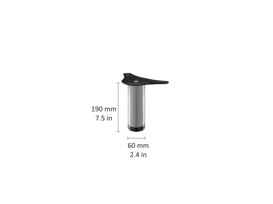 Die PASO Möbelfüße aus Metall sind vielseitig, schön und stabil zugleich. Ihre runde Form mit einem Durchmesser von 6 cm verleiht ihnen ihren zeitlos-eleganten Look. Wählen Sie einfach Ihr Wunschdekor und die passende Länge aus. Beistelltische, Sideboards und viele andere Möbel lassen sich mit den PASO Tischbeinen hervorragend auf gewünschter Höhe positionieren. Höhenverstellbare Kunststofffüße gleichen Bodenunebenheiten aus und sorgen für einen sicheren Stand. Um die Möbelfüße zu montieren wird die mitgelieferte Montageplatte mit fünf Schrauben an der Unterseite des Möbelstückes oder der Tischplatte (mind. 2,2 cm Stärke) montiert. Die Möbelfüße können dank dem Schraubgewinde ohne Werkzeug aufgeschraubt und bei Bedarf auch wieder schnell demontiert werden.