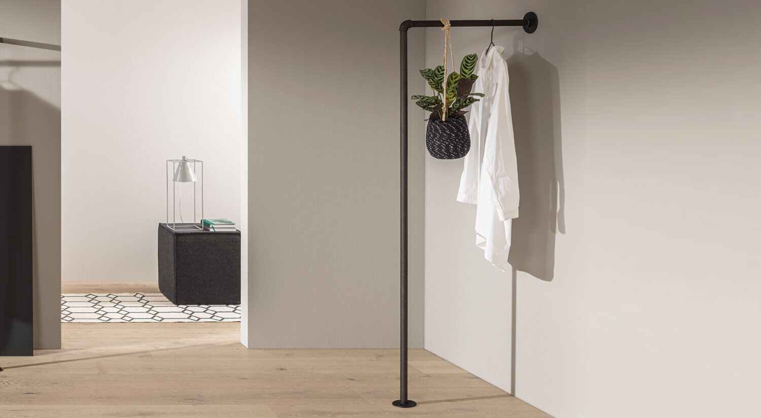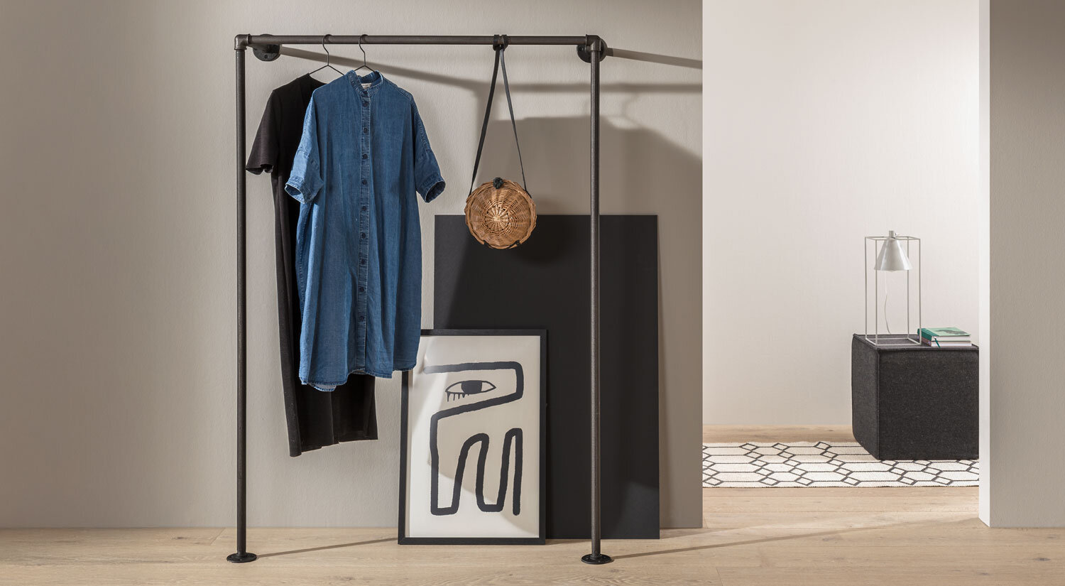 Modulares Kleiderstangensystem im angesagten Industrial Design.