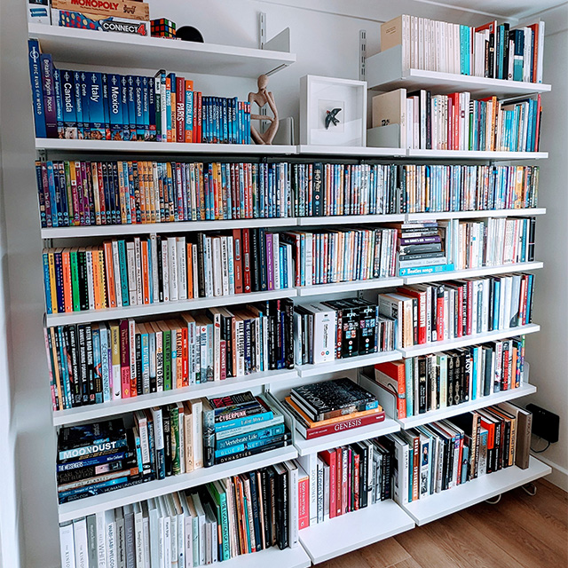 Diese Bücherwand glänzt mit puristisch modernem Design und einem cleveren Stecksystem. Die besteht aus nur drei Grundelementen: Den Bauteilen Maxi, Mini und End. Diese werden einfach zusammengesteckt und ergeben eine stabile Bücherwand von hoher Qualität. Dank der 34cm tiefen Elemente finden nicht nur Ihre Bücher im Wohnzimmer einen neuen Platz, sondern es können auch größere Dekoelemente und Vasen optimal verstaut werden.