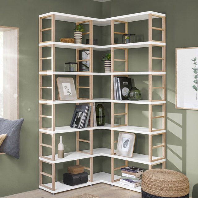 Eckregale aus Holz sind optische Highlights für Ihr Zuhause. Ein Eckregal aus Holz gibt es in den verschiedensten Holzarten und Farben, sodass Sie es mit Einrichtungsstilen von rustikal bis modern kombinieren können. Egal ob aus Massivholz oder mit einer echtholz-furnierten Oberfläche in Eiche, Buche und Nussbaum: Alle Produkte wirken wohnlich und tragen zu einer gemütlichen Atmosphäre in Ihrem Zuhause bei.