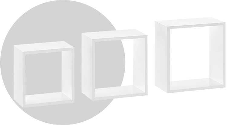 Regalwürfel in Schwarz oder grau harmonieren ideal mit einem minimalistischen, urbanen Einrichtungsstil und sind einzeln oder als Set erhältlich. Regalwürfel im 3er-Set können je nach Platz und Geschmack dekorativ an der Wand arrangiert und miteinander kombiniert werden. Schwarze Regalwürfel bieten jede Menge zusätzlichen Stauraum und helfen, den Platz an der Wand optimal zu nutzen. Die Wand Regal Würfel rahmen Ihre Bücher, Fotos und Deko-Elemente wunderschön ein und sind daher ideal zu deren Präsentation an der Wand geeignet.