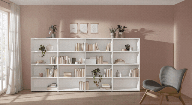 • Modulare Regalwand für Bücher für sämtliche Wohn- und Arbeitsbereiche
