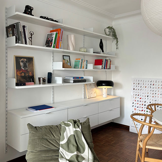 Die Regalbodenträger sind besonders dekorativ und eine schlichte, unauffällige Lösung. Die Träger Book hingegen haben einen funktionellen Charakter und dienen als Stütze für Bücher und Ordner.