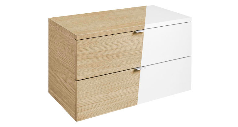 Die Deckplatten der Schubladen werden in innovativer Wabenkerntechnik und mit ansprechender Lackoberfläche gefertigt. Die Korpusse bestehen aus Spanplatten und haben eine melaminbeschichtete Oberfläche.