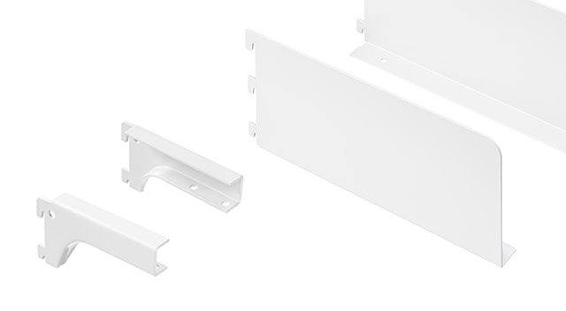 Für das ON-WALL Wandschienen Regal stehen zwei Träger zur Auswahl: Träger Book und Regalbodenträger. Beide sind aus Stahl gefertigt, pulverbeschichtet und können sowohl in 1-reihigen als auch in 2-reihigen Systemen verbaut werden.