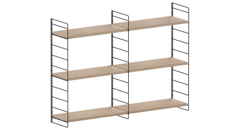 Die Basis des Regalsystems bilden die feinen Wandleitern aus pulverbeschichtetem Stahldraht, die einfach an die Wand geschraubt werden können. Die Regalböden legen Sie auf die Regalleiter. Die Fachhöhe können Sie jederzeit variieren und anpassen. Dank seines modularen Charakters können Sie das Regal je nach Bedarf vertikal oder horizontal erweitern. Dafür müssen Sie nur zusätzliche Wandleitern montieren und mit Regalböden bestücken.