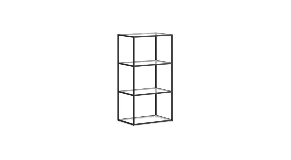 Im Blickpunkt des Regals steht der filigrane Rahmen aus schwarz-mattem Aluminium. Bei den Fachböden haben Sie die Wahl zwischen wunderschöner Naturholzoptik, die man fühlt - sowie modernen Glasböden. Das Regalsystem lässt sich ganz nach Ihren Wünschen modular in die Höhe und Breite bauen. Als besonderer Clou können die Regalböden auch weggelassen werden, um zwei Fächer in der Höhe zu verbinden: Pflanzen und höhere Gegenstände verleihen dem Regal so einen unvergesslichen Auftritt.