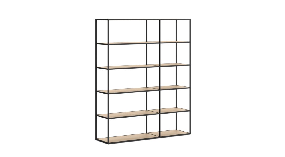 Im Blickpunkt des Regals steht der filigrane Rahmen aus schwarz-mattem Aluminium. Bei den Fachböden haben Sie die Wahl zwischen wunderschöner Naturholzoptik, die man fühlt - sowie modernen Glasböden. Das Regalsystem lässt sich ganz nach Ihren Wünschen modular in die Höhe und Breite bauen. Als besonderer Clou können die Regalböden auch weggelassen werden, um zwei Fächer in der Höhe zu verbinden: Pflanzen und höhere Gegenstände verleihen dem Regal so einen unvergesslichen Auftritt.