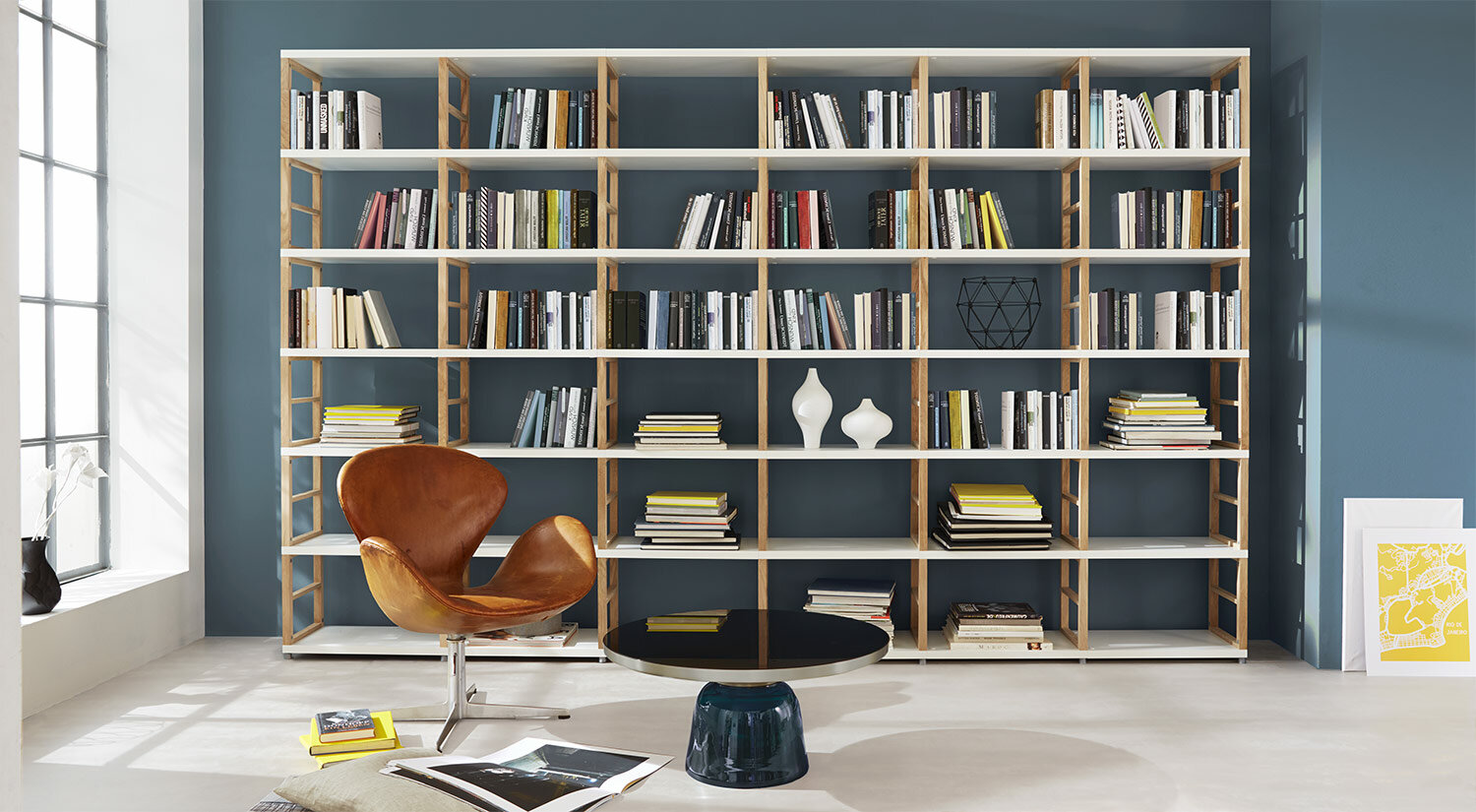 - Modulares Regalsystem, in beliebiger Höhe, Breite oder als Ecklösung konfigurierbar sowie nachträglich erweiterbar