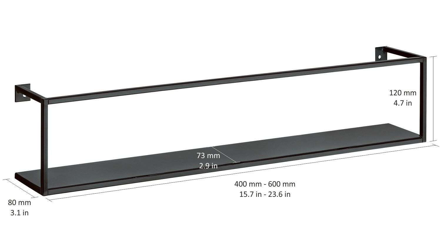 Das Wandregal Metall AQUARIUM ist dank seines modernen und eleganten Designs ein echter Blickfang! Für die symmetrisch transparent wirkende Form des Metallregals wurde ein filigranes 0,7x0,7cm schmales Vierkantrohr zu einem offenen Rechteck geformt, in dem Ihre Dekoaccessoires im Wohnzimmer, kleine Handtücher im Bad oder auch allerlei Gewürzmischungen in der Küche einen Platz finden. Das Wandregal ist aus pulverbeschichtetem Stahl gefertigt und bis zu 15 kg belastbar. Schrauben, Dübel sowie eine Montageanleitung sind im Lieferumfang enthalten.