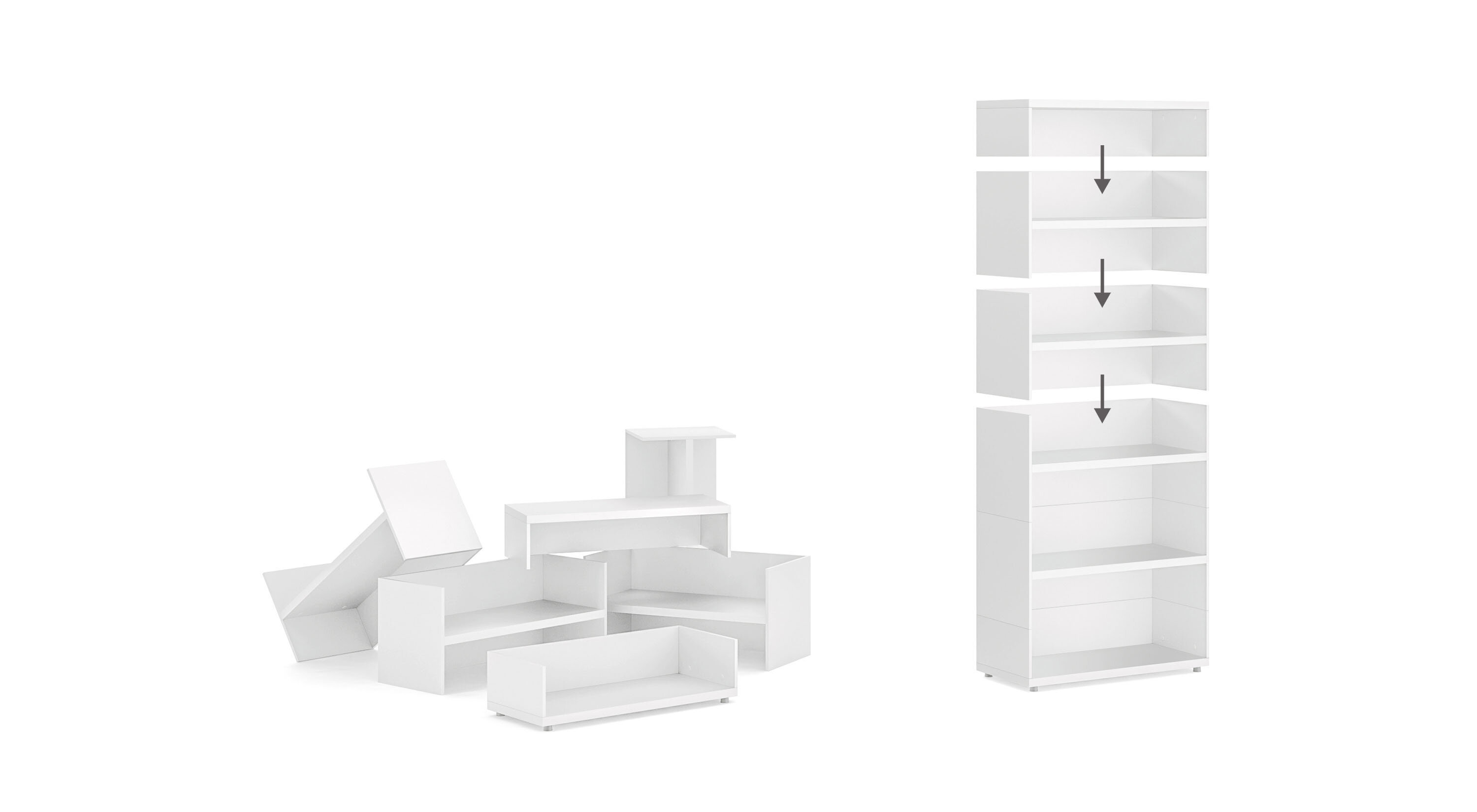 - Die Regalsäulen können jederzeit umgestaltet oder getrennt werden
