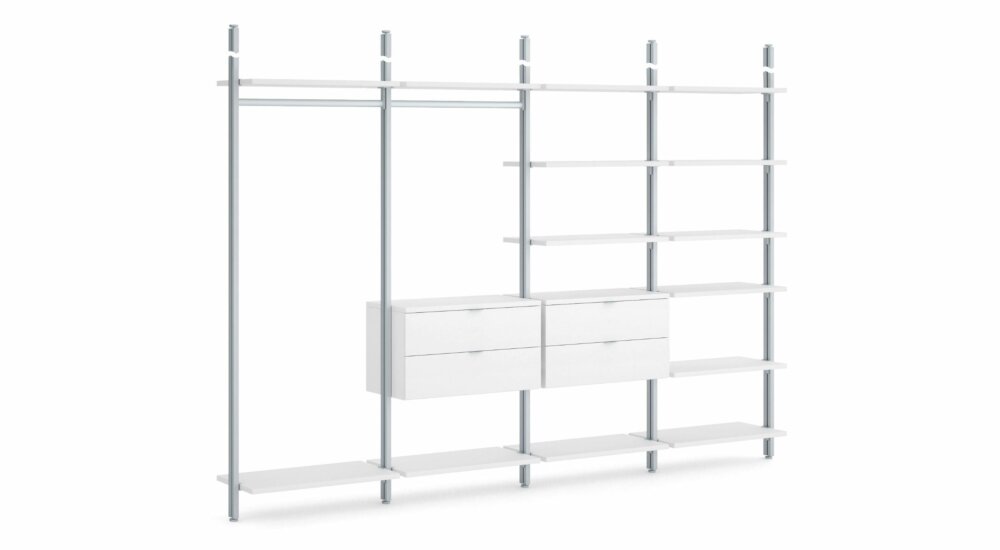 Mit dem Regalsystem CLOS-IT wird Ihr Traum vom begehbaren Kleiderschrank wahr. Das individualisierbare Regalsystem eignet sich ebenso als Garderobe im Flur, als Raumteiler, eleganter Kleiderständer, sowie für den Ladenbau. Im Regalkonfigurator können Sie das System ganz bequem an Ihre individuellen Maße sowie die Anzahl von Kleiderstangen, Schubläden und Regalböden anpassen. Auch eine Anfertigung nach Ihrem Wunschmaß ist möglich - zentimetergenau. Und möchten Sie aufgrund eines Umzugs oder einer Raumumgestaltung Ihr CLOS-IT-System anders arrangieren wollen, ist auch dies flexibel möglich.