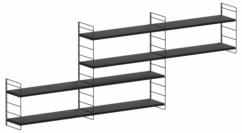Die Basis des Regalsystems bilden die feinen Wandleitern aus pulverbeschichtetem Stahldraht, die einfach an die Wand geschraubt werden können. Die Regalböden legen Sie auf die Regalleiter. Die Fachhöhe können Sie jederzeit variieren und anpassen. Dank seines modularen Charakters können Sie das Regal je nach Bedarf vertikal oder horizontal erweitern. Dafür müssen Sie nur zusätzliche Wandleitern montieren und mit Regalböden bestücken.