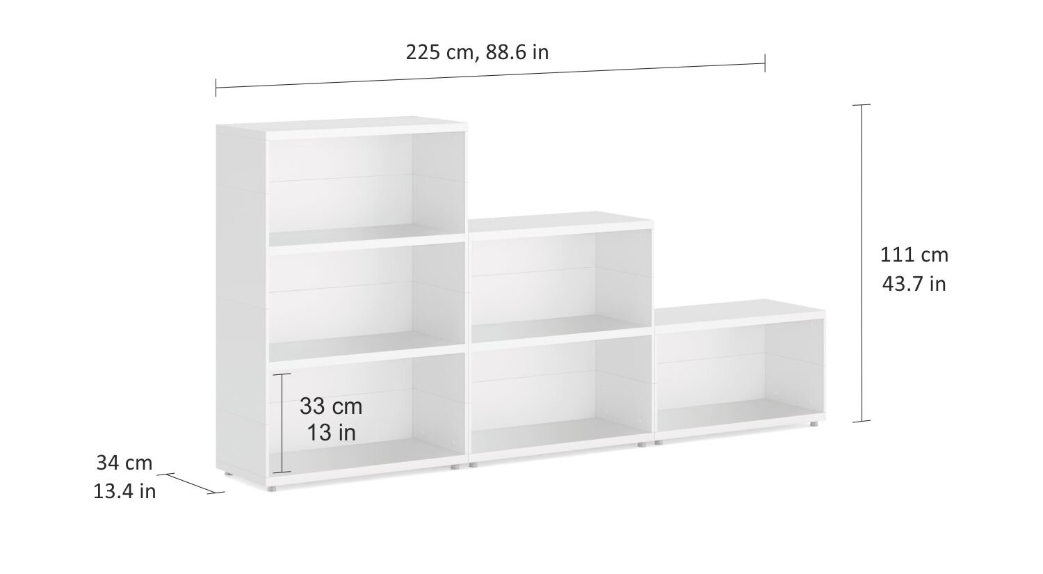 CASE Maxi-3x3 Stepped Shelf | 225x111x34 cm | white
