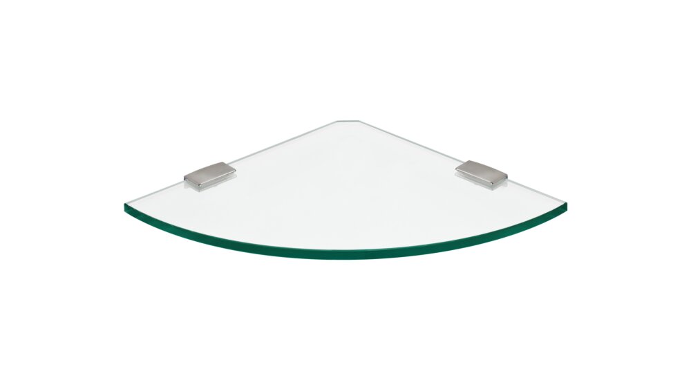 The CORNER+FLAC glass corner shelf features a minimalist design and offers space for small everyday items or highlights decorative accessories in your living room, kitchen or bathroom. The CORNER glass shelf board is made of 8 mm thick tempered glass* with high-gloss, polished edges. The square FLAC shelf brackets are made of brushed and clear-lacquered die-cast zinc. The mounting hardware kit, consisting of screws and wall anchors is included in the delivery.