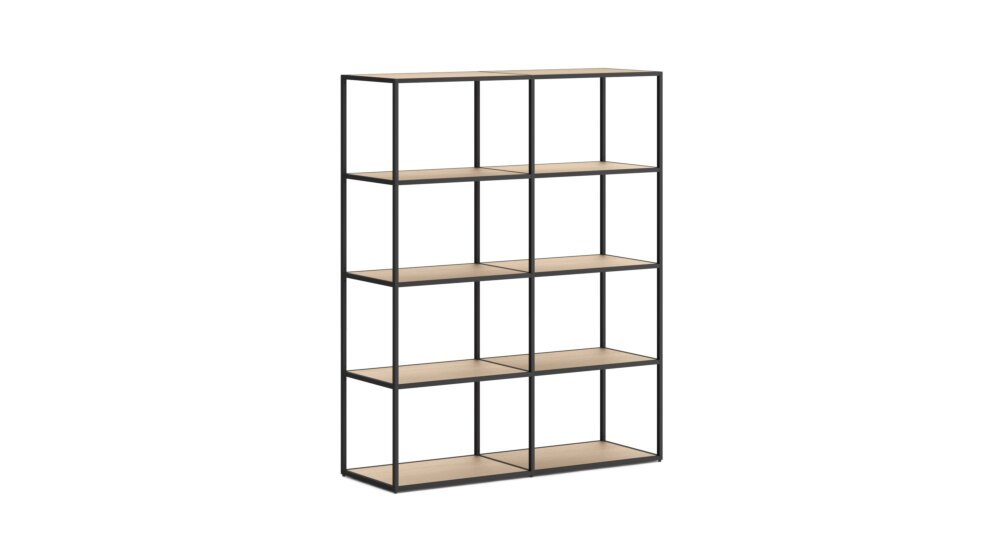 The emphasis here is on the slender frame made of matt black aluminium. For your shelf boards, you can choose between beautiful, natural wood looks you can run your fingers over – or our more starkly modern glass shelf boards. The shelving system can be modularly extended in height and width. For an extra special look: forego the shelf boards altogether to create one high shelf space: Plants and other tall objects will look amazing in that frame.