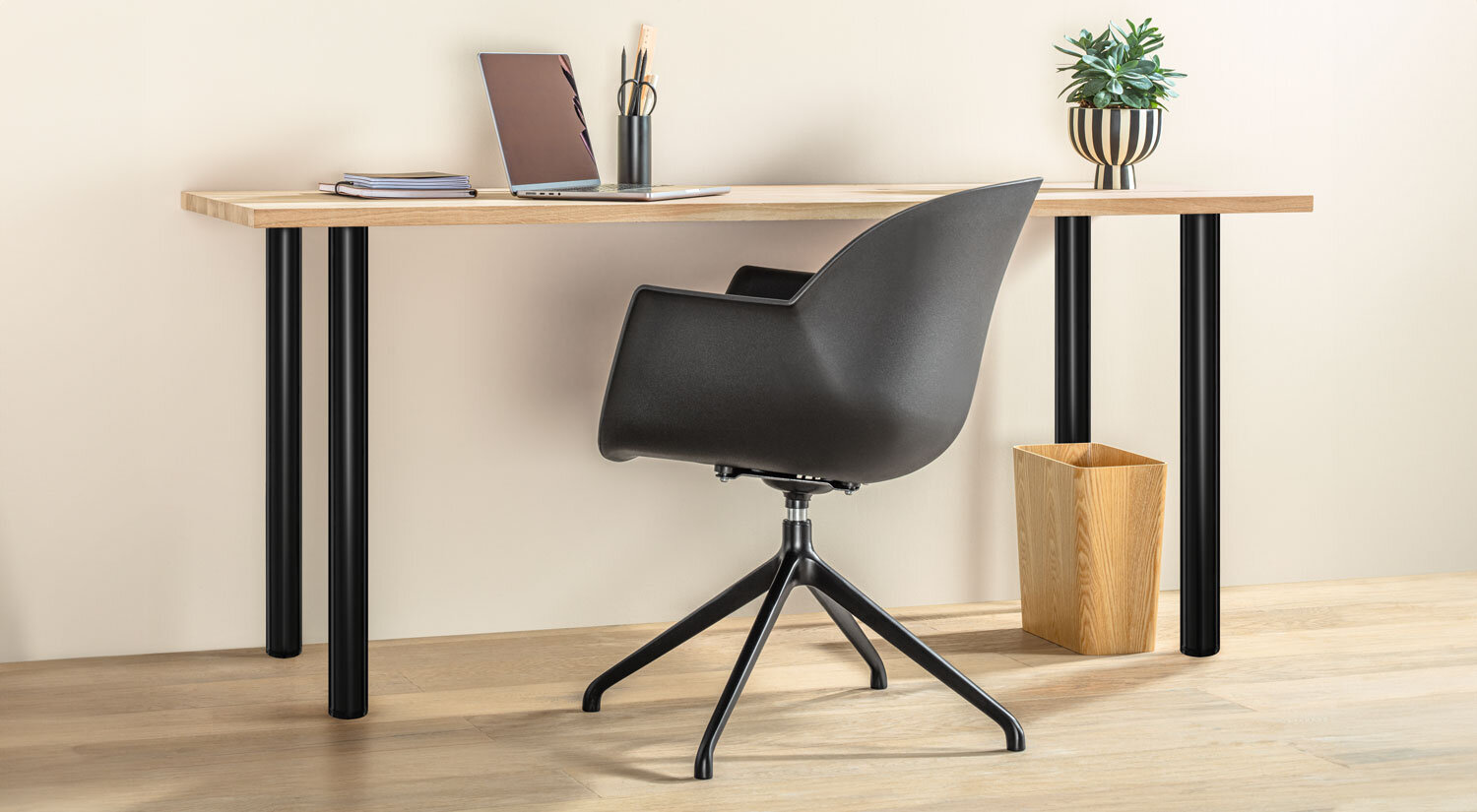 The metal PASO table legs are versatile, attractive and sturdy. Their round shape and 6 cm diameter lends them a timeless look of elegance. Decide on the look you want and the right height for your table. You can also create elevated desks and work tables with PASO table legs. They come with height-adjustable leveling feet that compensate for uneven flooring and give furniture stability. To mount the table legs, simply attach the included mounting plate with five screws to the bottom side of the table top (at least 2.2 cm thick). Practical threaded rods eliminate the need of tools to attach or quickly remove the table legs, as needed.