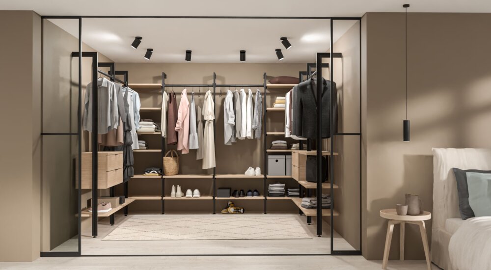 Un dressing ouvert est tellement tendance dans la chambre ou une pièce attenante. Grâce à nos étagères dressing modulables CLOS-IT, vous réalisez le rêve d'un dressing raffiné pour votre garde-robe préférée. Tirez le meilleur parti des coins de votre pièce et créez l’espace de rangement dont vous avez besoin pour vos vêtements, accessoires et chaussures. L'étagère d'angle CLOS-IT impressionne par ses mâts porteurs en aluminium de haute qualité, sur lesquels tous les éléments réglables en continu peuvent être montés et réarrangés à tout moment. Parmi les étagères, vous avez le choix entre des étagères particulièrement écologiques et légères en taille standard ou des étagères sur mesure.