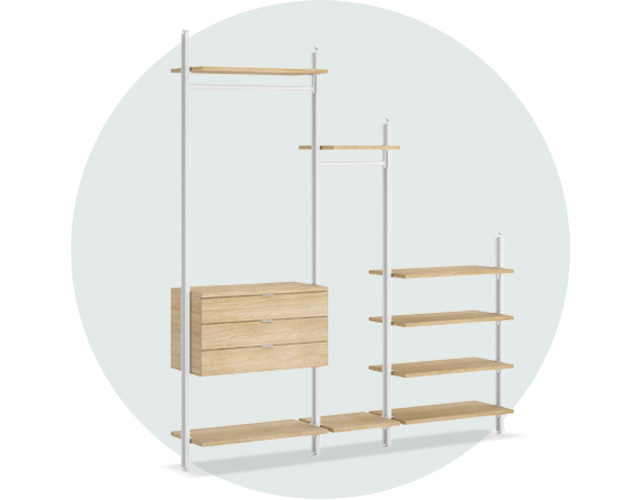 Vous en rêviez, et c'est enfin possible. Avec nos étagères dressing CLOS-IT, installer un dressing modulable dans votre dressing chambre est un projet à portée de main. La série CLOS-IT est tellement fonctionnelle qu'il est possible d'en installer des éléments en guise d'étagère individuelle dans d'autres pièces de la maison. Que diriez-vous d'une ? Ou d'une étagère pour augmenter l'espace de rangement inutilisé sous des rampants ? Les mâts porteurs en aluminium sont élégants et peuvent être fixés au mur ou au plafond. Vous pouvez également opter pour une version autoportante pour ne pas avoir à fixer de mâts. Avec des caissons à tiroirs pratiques, des de haute qualité en aluminium et des particulièrement écologiques et légères, votre promet d'être magnifique. Si votre pièce requiert des dimensions spéciales, nous adapterons volontiers vos composants selon les mesures que vous nous communiquerez. Pour l'assemblage, positionnez et ajustez chaque élément sur les mâts porteurs à la hauteur souhaitée grâce au réglage en continu de leurs supports. Vous pourrez ensuite compléter et adapter votre étagère ou mettre en place une nouvelle idée à votre guise et en quelques minutes.