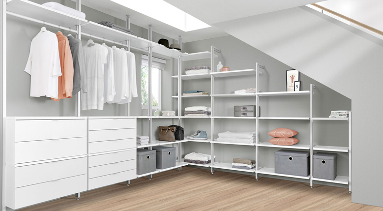 Si vous recherchez un grand espace de rangement, nous vous recommandons nos étagères sur pied. Les étagères d'angle structurent la pièce et exploitent le moindre recoin. Agrémentées de votre décoration préférée, les étagères créent un style d'intérieur original. Pour les étagères d'angle sur pied, vous avez le choix entre l' et l' L'étagère d'angle BOON peut être équipée de portes pratiques et de parois arrières, ce qui confère à la pièce un style ordonné en un clin d'œil. L'étagère d'angle MAXX séduit par ses parois latérales ouvertes et son apparence moderne accentuée par des cadres latéraux ouverts.