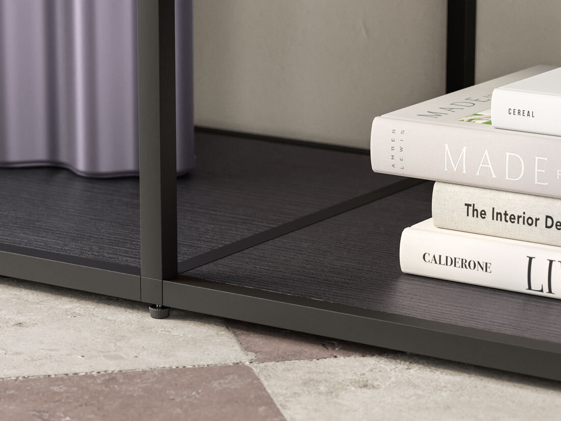 L'étagère sur pied LIUM est équipée de pieds réglables qui permettent de stabiliser l'étagère même sur des sols inégaux. Grâce à sa modularité, elle offre de nombreuses options de conception individuelles. Son design élégant et intemporel ainsi que les matériaux de haute qualité en font un élément décoratif dans le salon, la salle à manger et le bureau.