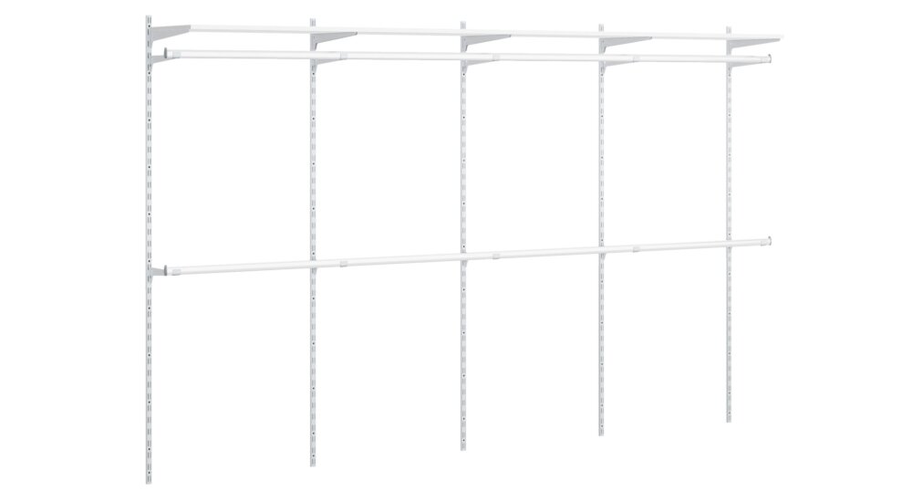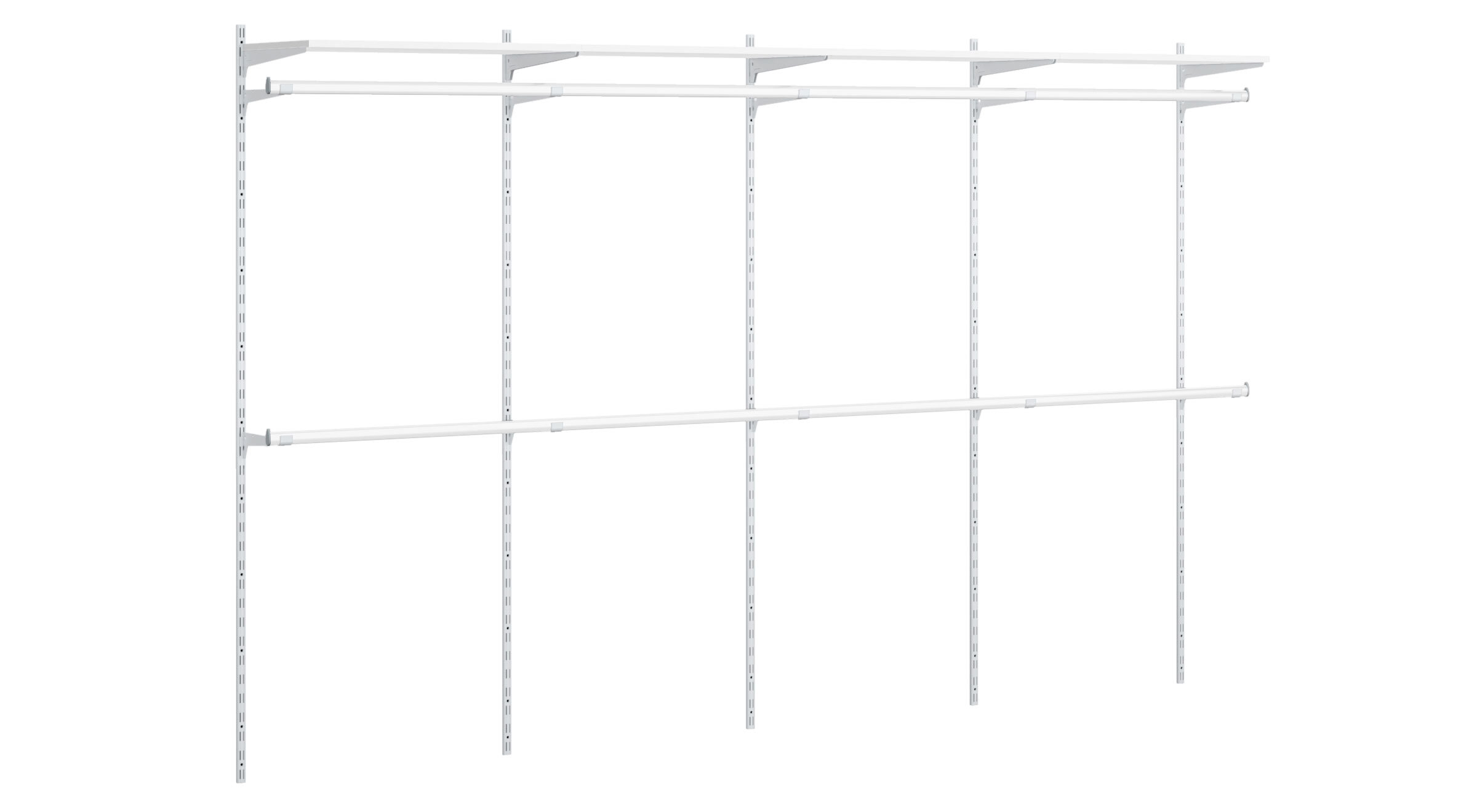Système d'étagères murales intemporel et à prix avantageux pour le garde-manger, la cave, la buanderie, les appartements d'étudiants et l'aménagement de magasins avec crémaillères + supports en acier.