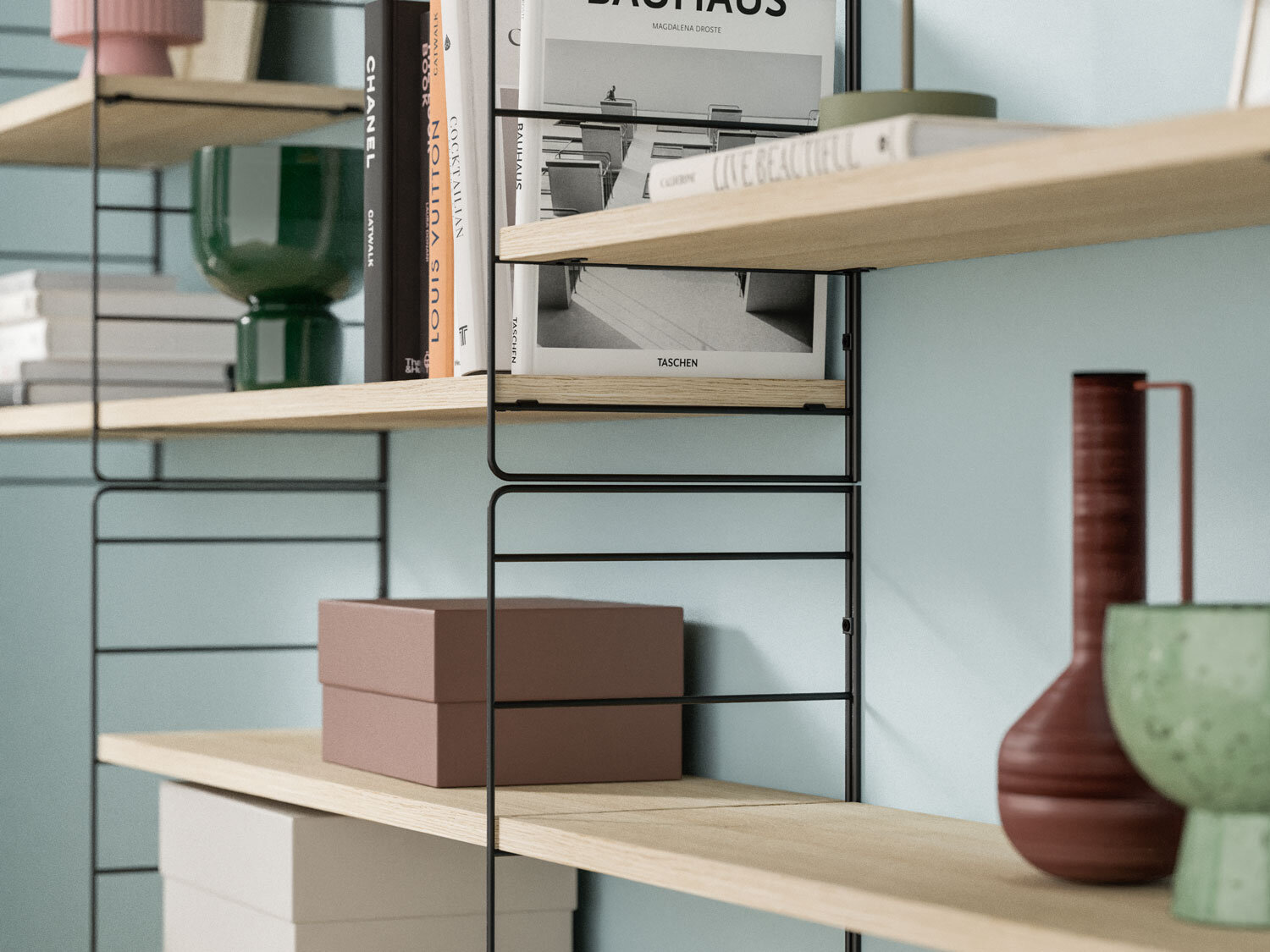 L'étagère crémaillère suspendue STEP combine un design filigrane et aéré et un espace de rangement généreux. Avec son élégance intemporelle et son style scandinave, elle attire tous les regards dans le séjour, le bureau à domicile ou la cuisine.