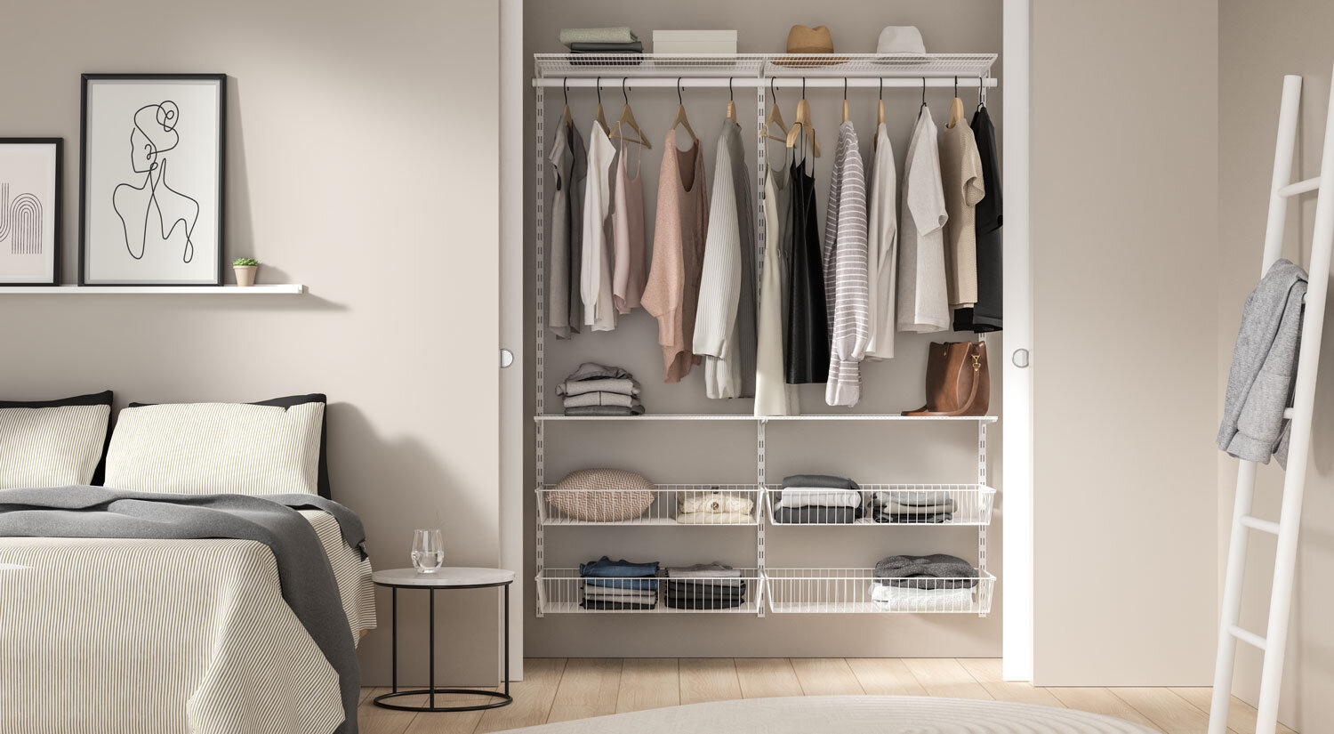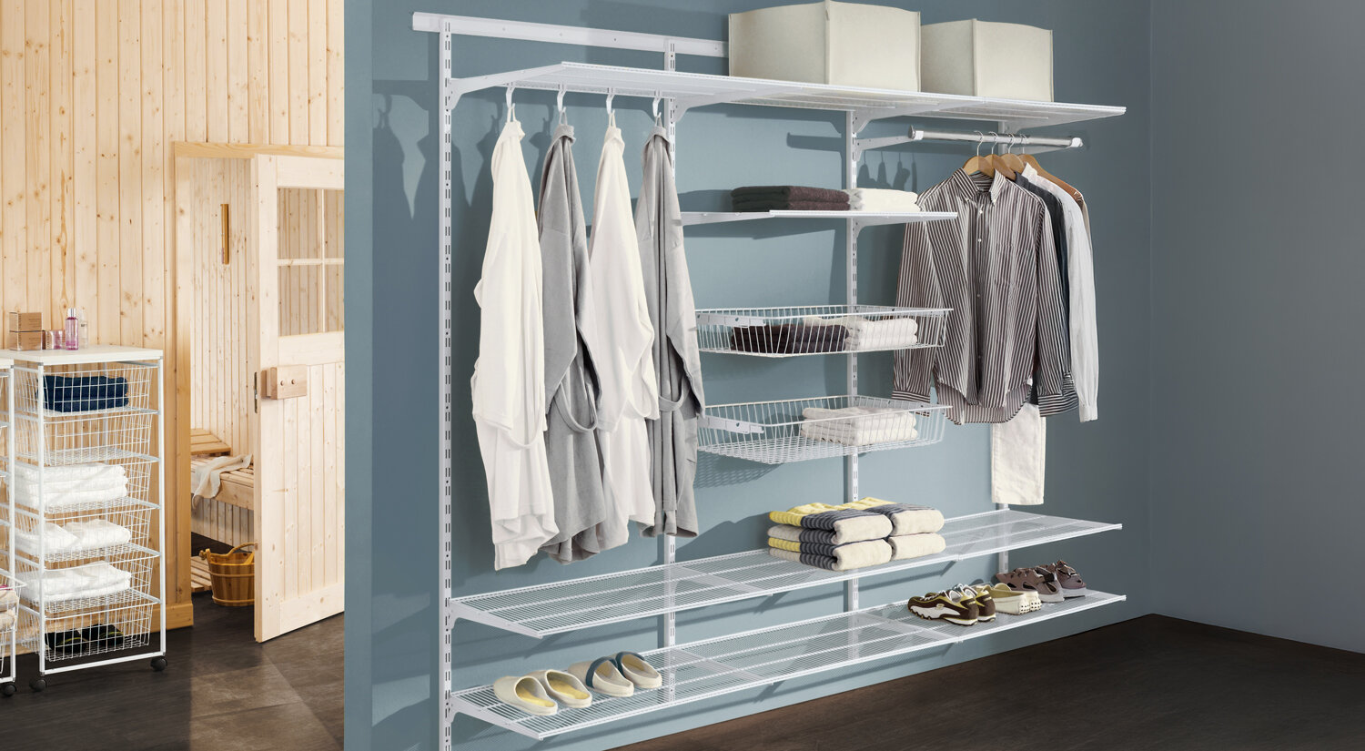 Envie d'un placard dressing ouvert ? Le système de rangement pour dressing WALK-IN est le bon choix. Le système de rangement pour dressing est facile et rapide à monter : fixez le rail de montage horizontal au mur, accrochez le rail de suspension et posez les étagères. Le tour est joué ! Vous obtenez des étagères qui s'adaptent parfaitement à vos besoins de rangement. Si vous avez besoin d'une étagère avec une hauteur ou une largeur spéciale, configurez-la en quelques clics dans le configurateur 3D. Vous pouvez également y indiquer le nombre d'éléments de votre système de rangement.