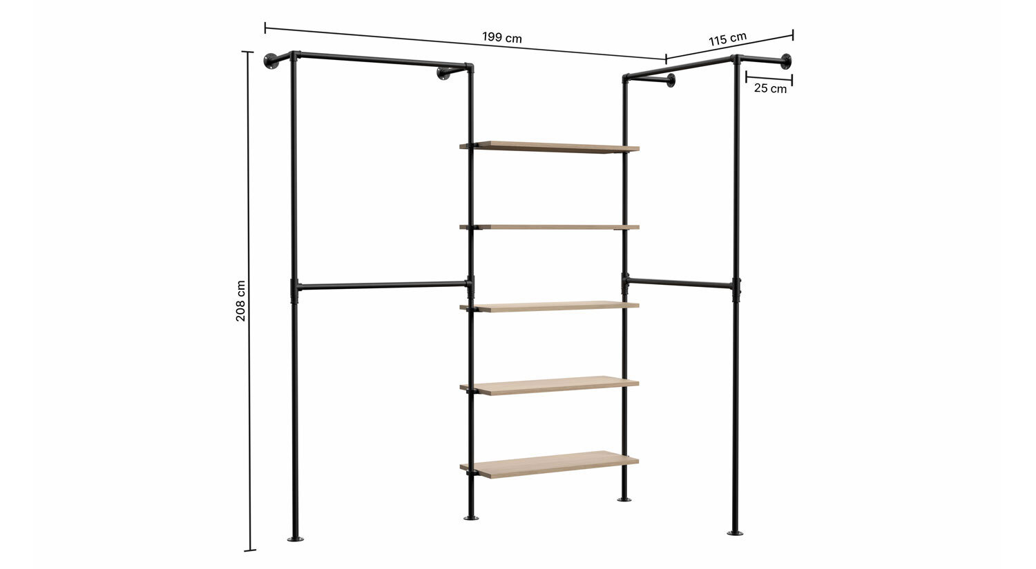 PIPE HW-306 Kledingrek systeem | eikenhout fineer/zwart