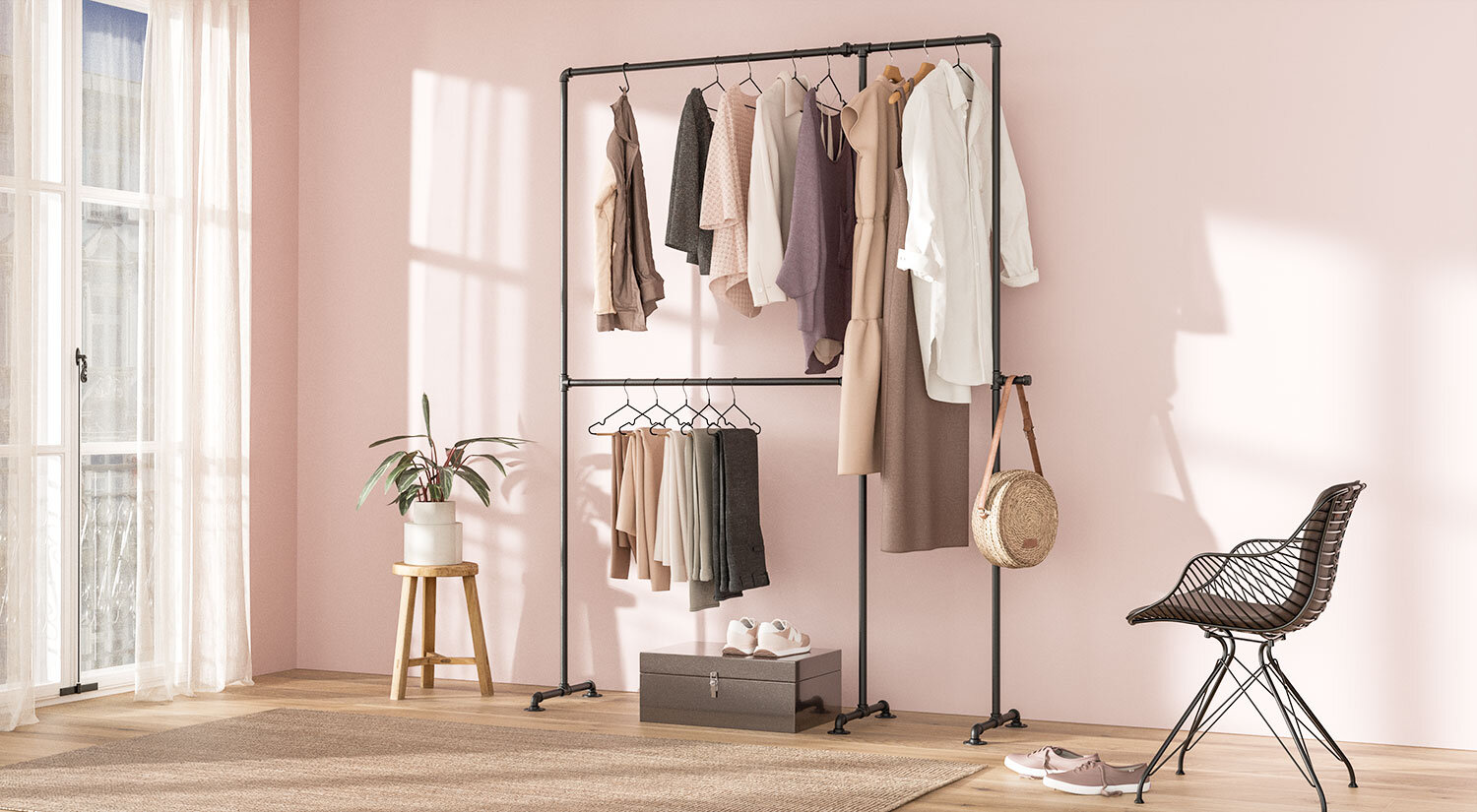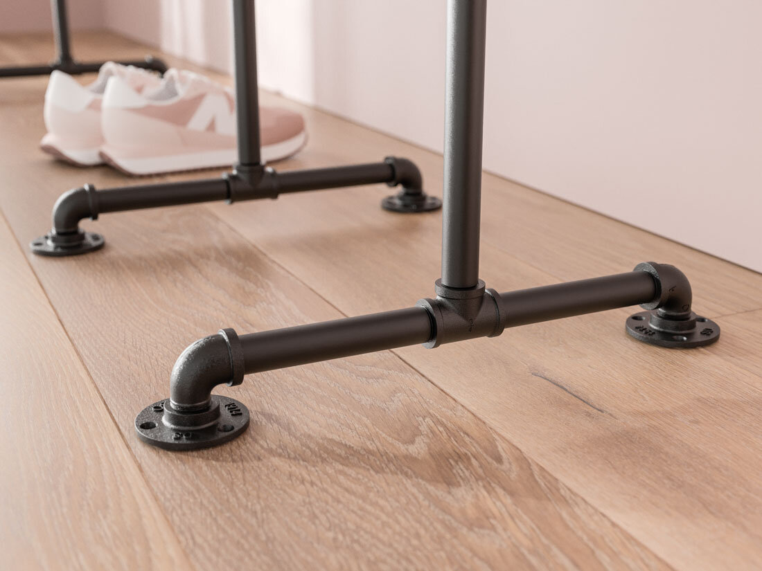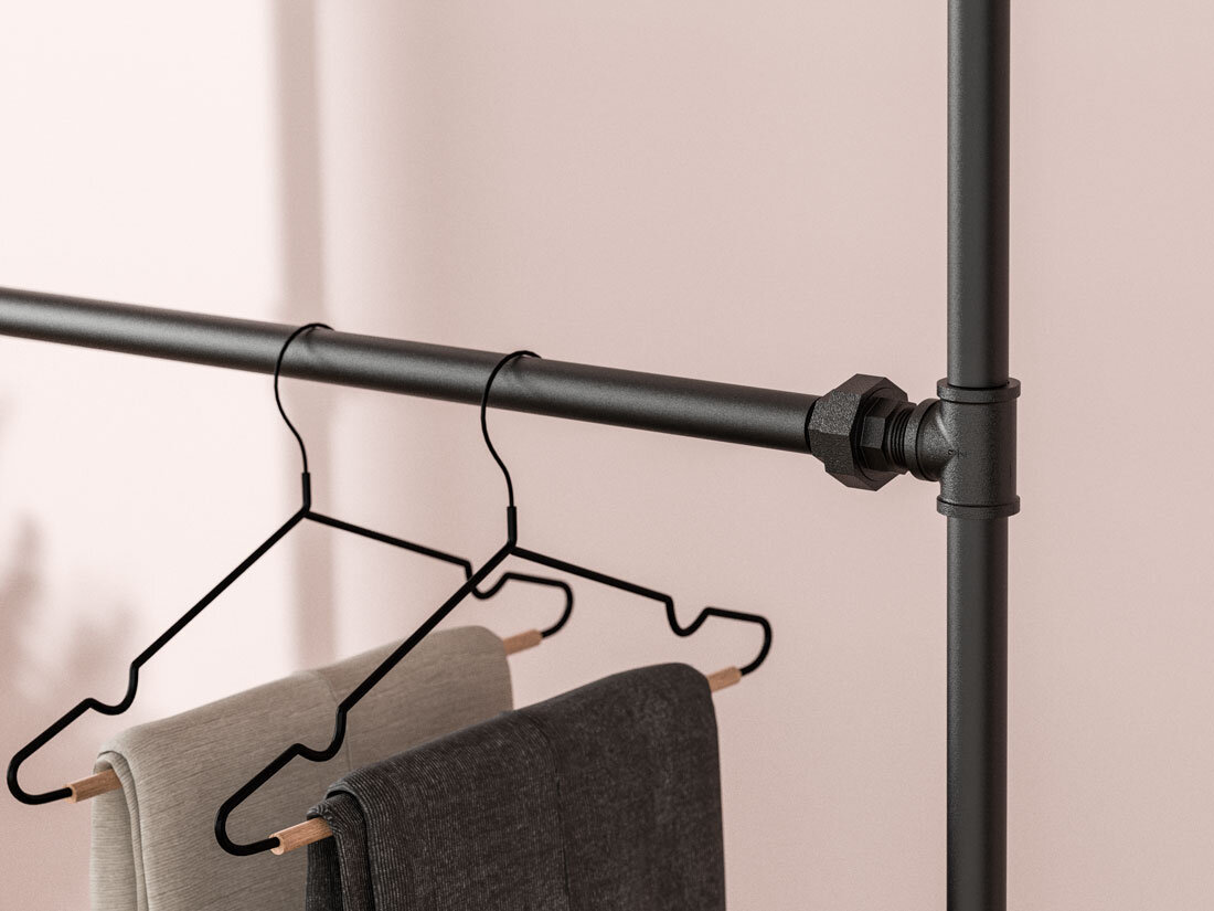 Met PIPE bergt u uw kleding overzichtelijk en altijd binnen handbereik op. Het modulaire systeem is bijzonder robuust en dankzij de hippe loftstijl uniek. Of u het nu vrijstaand of aan de wand monteert – PIPE biedt flexibele toepassingsmogelijkheden en hoge stabiliteit. De echt houtfineer legplanken zorgen voor een natuurlijke uitstraling en vormen het perfecte contrast met het stedelijke loftdesign – met extra ruimte voor schoenen, tassen en accessoires.