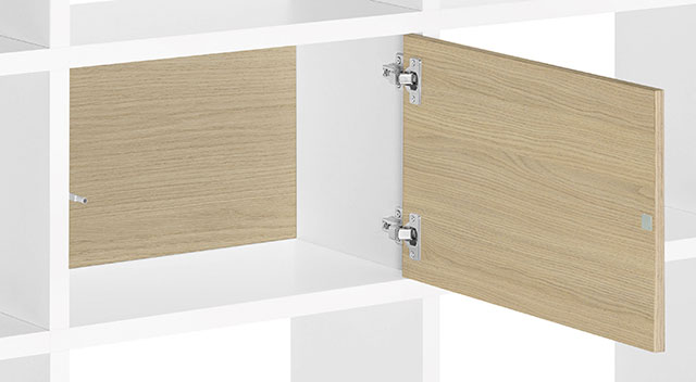 If you need storage space, you can hide it simply and elegantly behind handleless doors. Thanks to push-to-open technology, the doors can be opened with light pressure. Our doors are available in 3 sizes. The small door is mounted on the inside, the two larger doors are surface-mounted. The holes for the doors can also be drilled at a later date using a mounting template. Back panels are included in the scope of delivery on request.